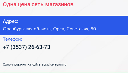 Одна цена, сеть магазинов по адресу Оренбургская область, Орск, Советская, 90 в дальнейшем Организация, размещена в следующих категориях: