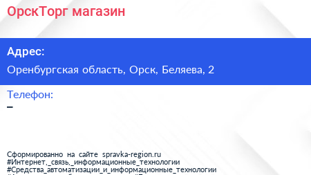 ОрскТорг, магазин по адресу Оренбургская область, Орск, Беляева, 2 в дальнейшем Организация, размещена в следующих категориях: