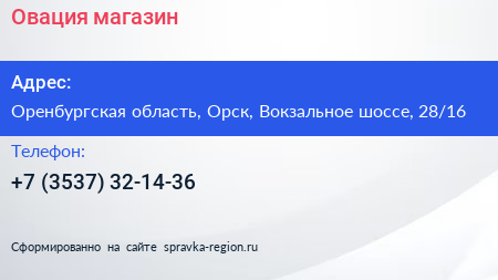 Овация, магазин по адресу Оренбургская область, Орск, Вокзальное шоссе, 28/16 в дальнейшем Организация, размещена в следующих категориях: