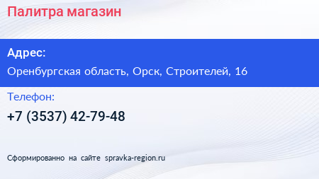 Палитра, магазин по адресу Оренбургская область, Орск, Строителей, 16 в дальнейшем Организация, размещена в следующих категориях: