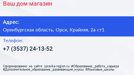 Ваш дом, магазин по адресу Оренбургская область, Орск, Крайняя, 2а ст1 в дальнейшем Организация, размещена в следующих категориях: