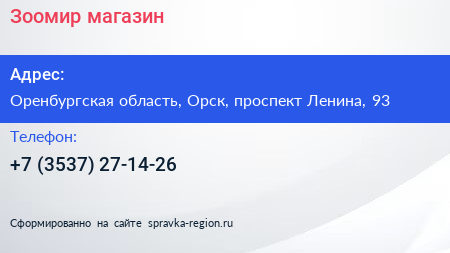 Зоомир, магазин по адресу Оренбургская область, Орск, проспект Ленина, 93 в дальнейшем Организация, размещена в следующих категориях: