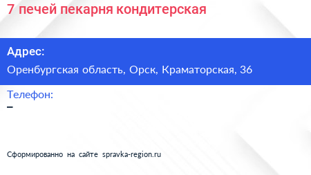 7 печей, пекарня-кондитерская по адресу Оренбургская область, Орск, Краматорская, 36 в дальнейшем Организация, размещена в следующих категориях:
