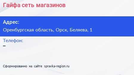 Гайфа, сеть магазинов по адресу Оренбургская область, Орск, Беляева, 1 в дальнейшем Организация, размещена в следующих категориях:
