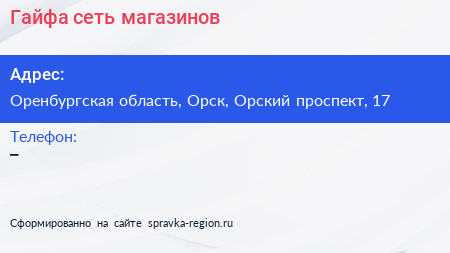 Гайфа, сеть магазинов по адресу Оренбургская область, Орск, Орский проспект, 17 в дальнейшем Организация, размещена в следующих категориях: