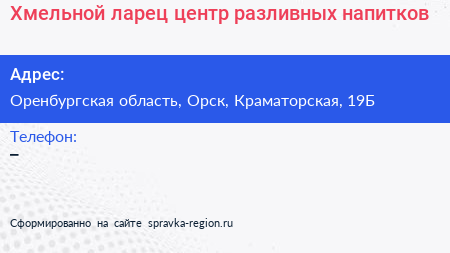 Хмельной ларец, центр разливных напитков по адресу Оренбургская область, Орск, Краматорская, 19Б в дальнейшем Организация, размещена в следующих категориях: