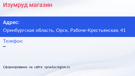 Изумруд, магазин по адресу Оренбургская область, Орск, Рабоче-Крестьянская, 41 в дальнейшем Организация, размещена в следующих категориях: