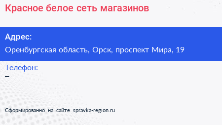 Красное & белое, сеть магазинов по адресу Оренбургская область, Орск, проспект Мира, 19 в дальнейшем Организация, размещена в следующих категориях: