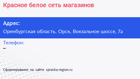Красное & белое, сеть магазинов по адресу Оренбургская область, Орск, Вокзальное шоссе, 7а в дальнейшем Организация, размещена в следующих категориях: