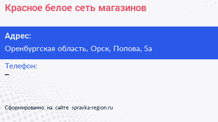 Красное & белое, сеть магазинов по адресу Оренбургская область, Орск, Попова, 5а в дальнейшем Организация, размещена в следующих категориях: