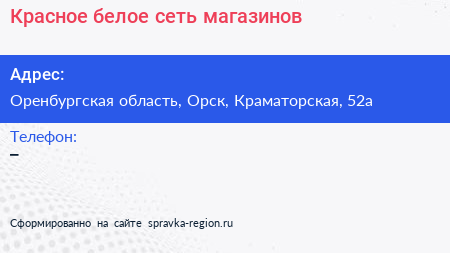 Красное & белое, сеть магазинов по адресу Оренбургская область, Орск, Краматорская, 52а в дальнейшем Организация, размещена в следующих категориях:
