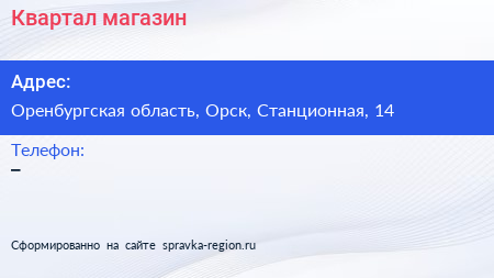 Квартал, магазин по адресу Оренбургская область, Орск, Станционная, 14 в дальнейшем Организация, размещена в следующих категориях: