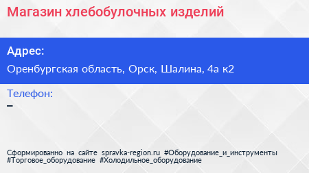 Магазин хлебобулочных изделий по адресу Оренбургская область, Орск, Шалина, 4а к2 в дальнейшем Организация, размещена в следующих категориях: