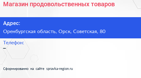 Магазин продовольственных товаров по адресу Оренбургская область, Орск, Советская, 80 в дальнейшем Организация, размещена в следующих категориях: