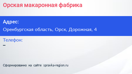 Орская макаронная фабрика по адресу Оренбургская область, Орск, Дорожная, 4 в дальнейшем Организация, размещена в следующих категориях: