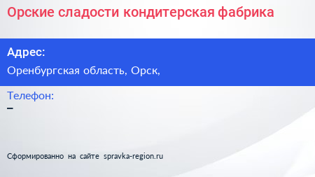 Орские сладости, кондитерская фабрика по адресу Оренбургская область, Орск, в дальнейшем Организация, размещена в следующих категориях: