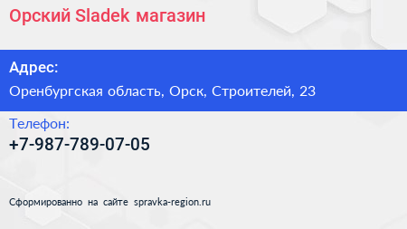 Орский Sladek, магазин по адресу Оренбургская область, Орск, Строителей, 23 в дальнейшем Организация, размещена в следующих категориях: