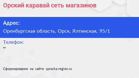 Орский каравай, сеть магазинов по адресу Оренбургская область, Орск, Ялтинская, 95/1 в дальнейшем Организация, размещена в следующих категориях: