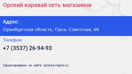 Орский каравай, сеть магазинов по адресу Оренбургская область, Орск, Советская, 68 в дальнейшем Организация, размещена в следующих категориях: