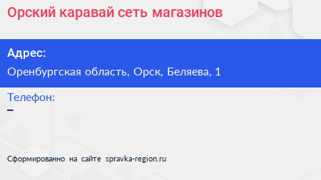 Орский каравай, сеть магазинов по адресу Оренбургская область, Орск, Беляева, 1 в дальнейшем Организация, размещена в следующих категориях: