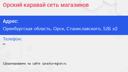 Орский каравай, сеть магазинов по адресу Оренбургская область, Орск, Станиславского, 52Б к2 в дальнейшем Организация, размещена в следующих категориях: