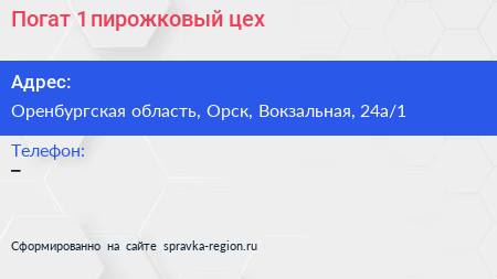 Погат-1, пирожковый цех по адресу Оренбургская область, Орск, Вокзальная, 24а/1 в дальнейшем Организация, размещена в следующих категориях: