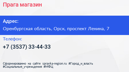 Прага, магазин по адресу Оренбургская область, Орск, проспект Ленина, 7 в дальнейшем Организация, размещена в следующих категориях:
