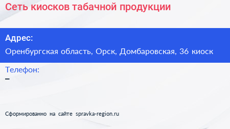 Сеть киосков табачной продукции по адресу Оренбургская область, Орск, Домбаровская, 36 киоск в дальнейшем Организация, размещена в следующих категориях: