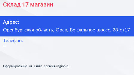 Склад #17, магазин по адресу Оренбургская область, Орск, Вокзальное шоссе, 28 ст17 в дальнейшем Организация, размещена в следующих категориях: