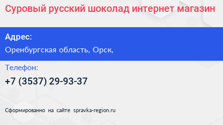 Суровый русский шоколад, интернет-магазин по адресу Оренбургская область, Орск, в дальнейшем Организация, размещена в следующих категориях: