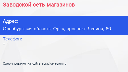 Заводской, сеть магазинов по адресу Оренбургская область, Орск, проспект Ленина, 80 в дальнейшем Организация, размещена в следующих категориях: