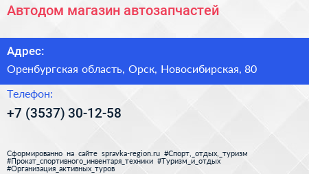 Автодом, магазин автозапчастей по адресу Оренбургская область, Орск, Новосибирская, 80 в дальнейшем Организация, размещена в следующих категориях: