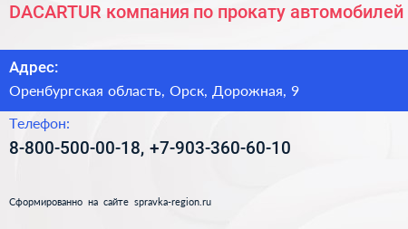 DACARTUR, компания по прокату автомобилей по адресу Оренбургская область, Орск, Дорожная, 9 в дальнейшем Организация, размещена в следующих категориях: