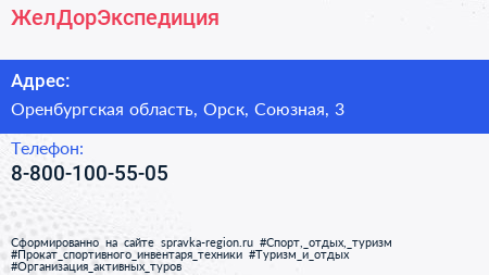 ЖелДорЭкспедиция по адресу Оренбургская область, Орск, Союзная, 3 в дальнейшем Организация, размещена в следующих категориях: