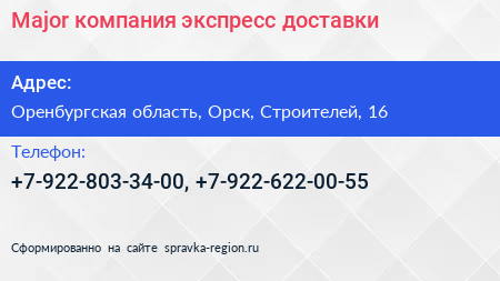 Major, компания экспресс-доставки по адресу Оренбургская область, Орск, Строителей, 16 в дальнейшем Организация, размещена в следующих категориях: