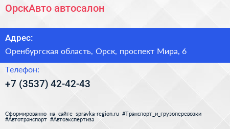 ОрскАвто, автосалон по адресу Оренбургская область, Орск, проспект Мира, 6 в дальнейшем Организация, размещена в следующих категориях: