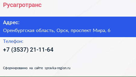 Русагротранс по адресу Оренбургская область, Орск, проспект Мира, 6 в дальнейшем Организация, размещена в следующих категориях: