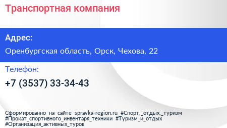 Транспортная компания по адресу Оренбургская область, Орск, Чехова, 22 в дальнейшем Организация, размещена в следующих категориях: