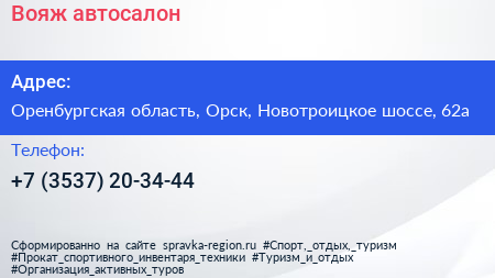 Вояж, автосалон по адресу Оренбургская область, Орск, Новотроицкое шоссе, 62а в дальнейшем Организация, размещена в следующих категориях: