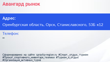 Авангард, рынок по адресу Оренбургская область, Орск, Станиславского, 53Б к12 в дальнейшем Организация, размещена в следующих категориях: