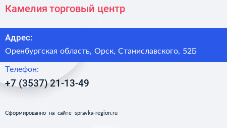 Камелия, торговый центр по адресу Оренбургская область, Орск, Станиславского, 52Б в дальнейшем Организация, размещена в следующих категориях: