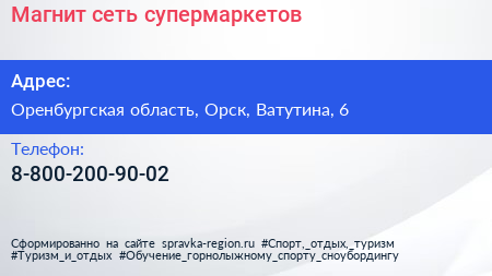 Магнит, сеть супермаркетов по адресу Оренбургская область, Орск, Ватутина, 6 в дальнейшем Организация, размещена в следующих категориях: