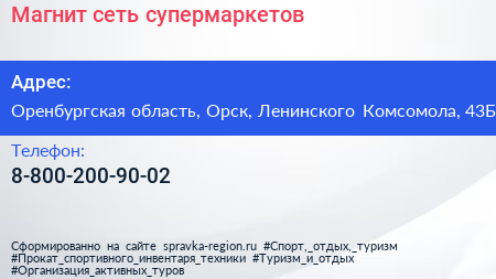 Магнит, сеть супермаркетов по адресу Оренбургская область, Орск, Ленинского Комсомола, 43Б в дальнейшем Организация, размещена в следующих категориях: