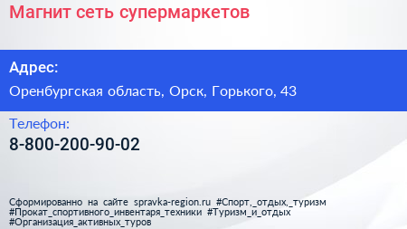 Магнит, сеть супермаркетов по адресу Оренбургская область, Орск, Горького, 43 в дальнейшем Организация, размещена в следующих категориях: