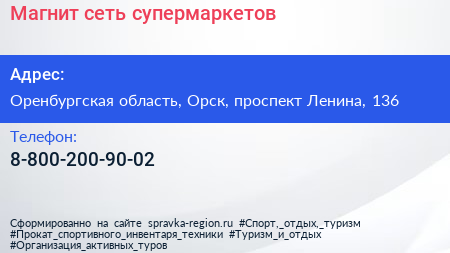 Магнит, сеть супермаркетов по адресу Оренбургская область, Орск, проспект Ленина, 136 в дальнейшем Организация, размещена в следующих категориях: