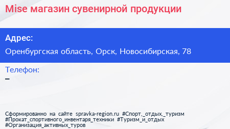 Mise, магазин сувенирной продукции по адресу Оренбургская область, Орск, Новосибирская, 78 в дальнейшем Организация, размещена в следующих категориях: