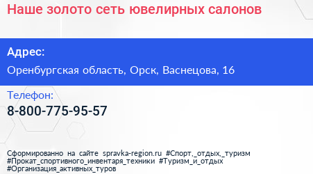 Наше золото, сеть ювелирных салонов по адресу Оренбургская область, Орск, Васнецова, 16 в дальнейшем Организация, размещена в следующих категориях:
