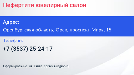Нефертити, ювелирный салон по адресу Оренбургская область, Орск, проспект Мира, 15 в дальнейшем Организация, размещена в следующих категориях: