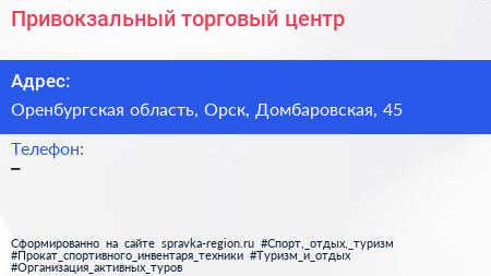 Привокзальный, торговый центр по адресу Оренбургская область, Орск, Домбаровская, 45 в дальнейшем Организация, размещена в следующих категориях: