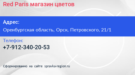 Red Paris, магазин цветов по адресу Оренбургская область, Орск, Петровского, 21/1 в дальнейшем Организация, размещена в следующих категориях: